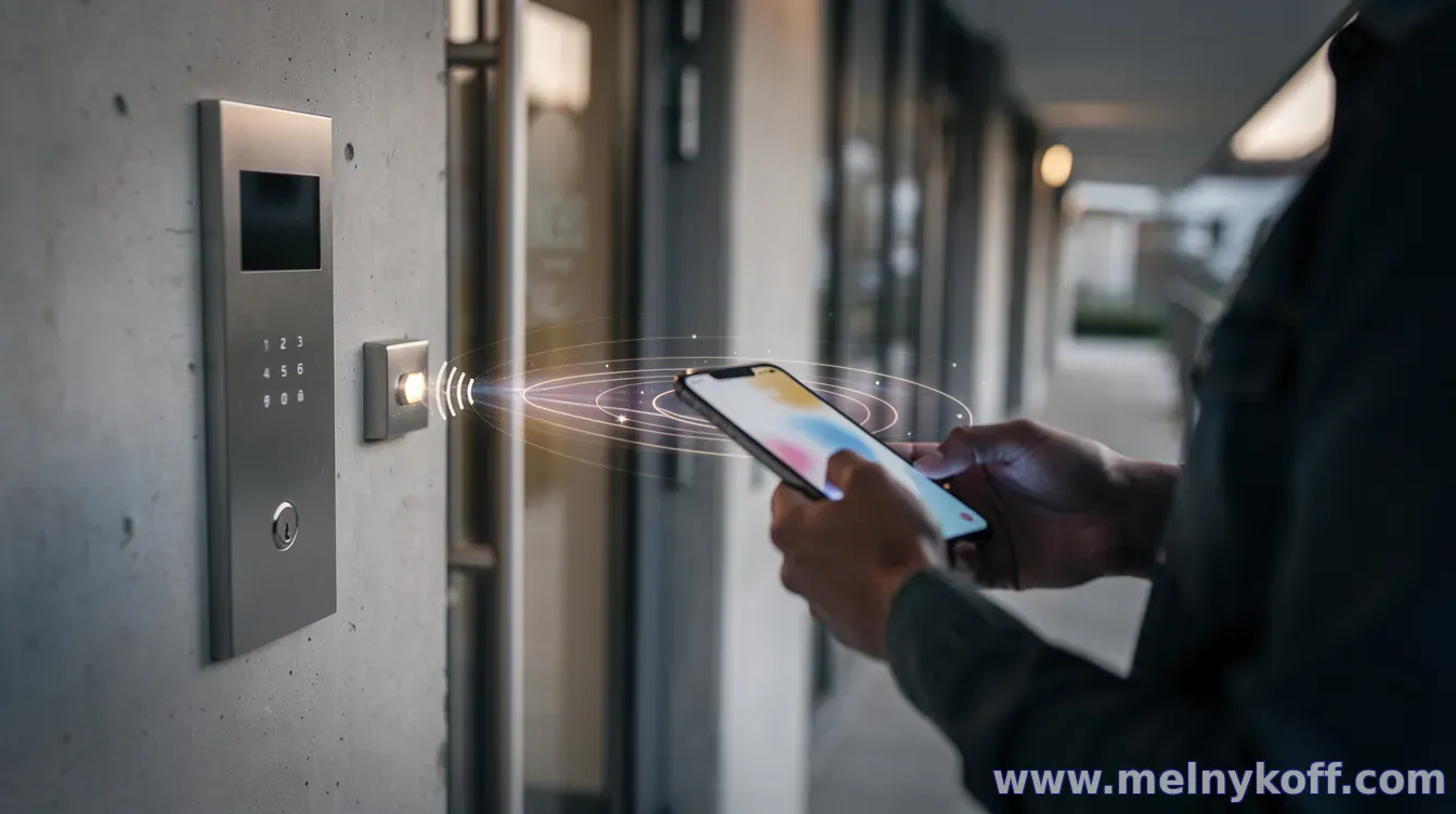 Если у домофона есть встроенный модуль связи или предусмотрен внешний адаптер, смартфон может выступать как ключ: вы получаете доступ через приложение, а иногда — через управление по Bluetooth/NFC или в рамках экосистемы умного дома.