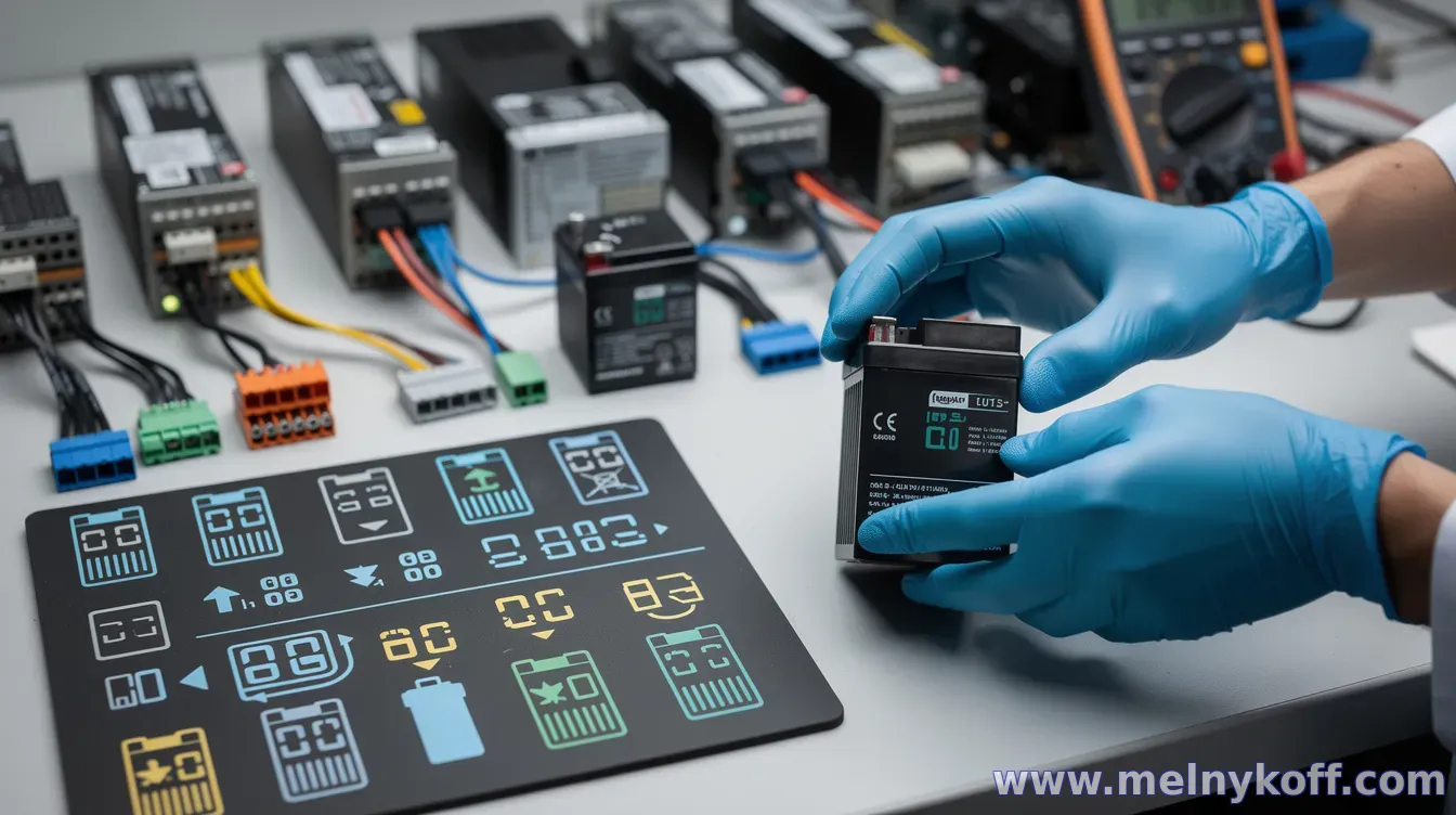 – Проведите тестовую разрядку с симуляцией аварийного отключения, чтобы проверить время автономной работы. – Регулярно проверяйте состояние аккумуляторов на наличие коррозии, утечек или утрат мощности. – Не смешивайте новые и старые батареи в одной сборке, чтобы избежать перекоса заряда. – При эксплутации в жарком помещении снижайте срок службы аккумулятора; хранение предпочтительно при умеренной температуре.