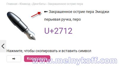 Где взять быстро то что вы хотите вставить на свой ресурс ? Очень неплохо выполнен сайт по символам unicode-table.com. Как взять символ с ресурса ? Просто в поиске задаем то что хотим. Пример поиска по слову перо.
