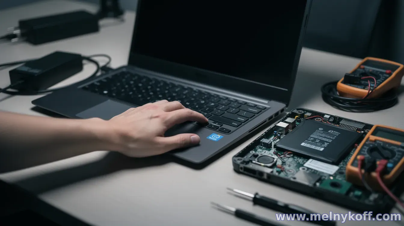 Ситуация, когда ноутбук не включается, может быть вызвана как банальными причинами (зарядка, кабели, питание), так и более серьёзными неполадками (аккумулятор, блок питания, материнская плата). Чтобы не тратить время, действуйте по порядку — от простых проверок к более сложным.